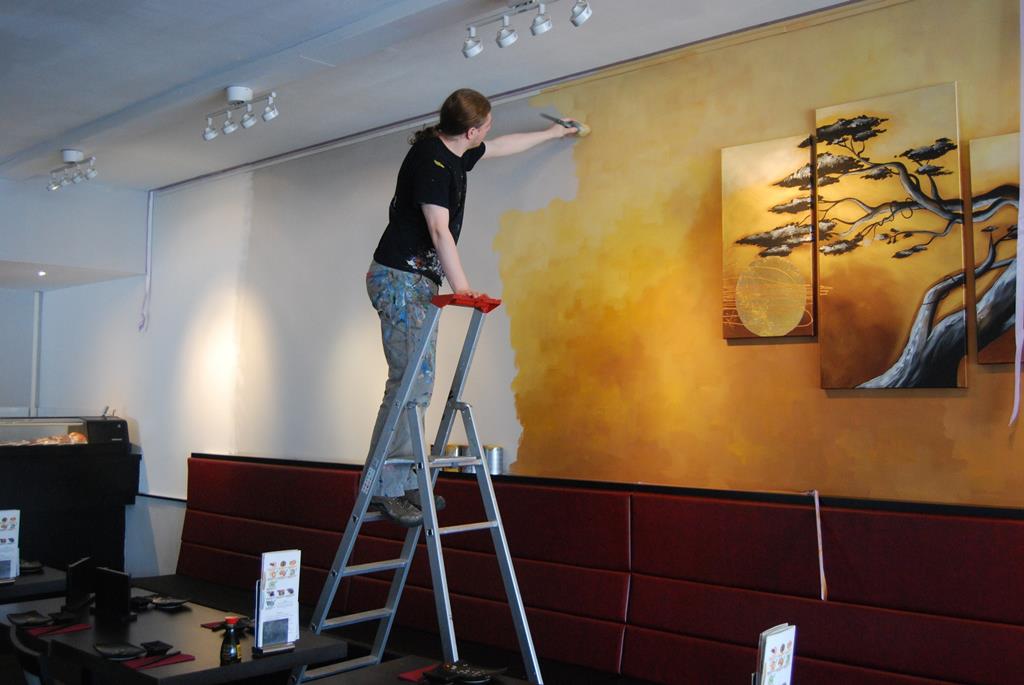 Wilt u uw zaak echt laten opvallen? Met decoratief schilderwerk geven we ruimtes karakter en maken we uw merk visueel sterk. Van een geschilderd logo tot een opvallende muurschildering: wij werken op maat van uw interieur en identiteit.